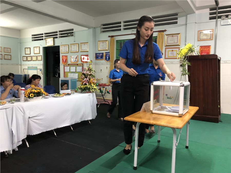 Hình - Đoàn viên đang bỏ phiếu bầu Ban chấp hành Chi đoàn